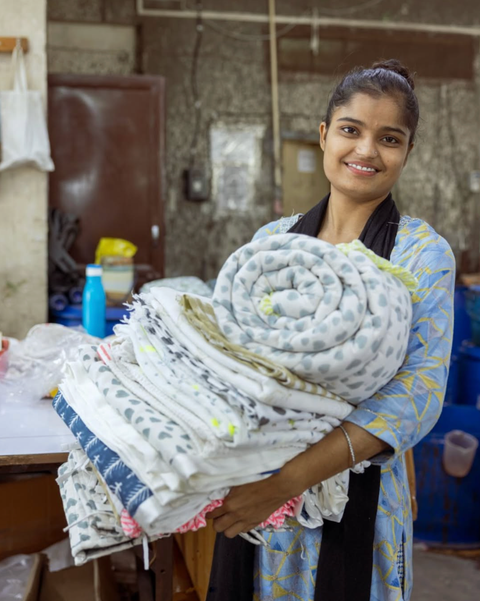 Our production is led by Shilpa in Jaipur and Rojina in Kathmandu, remarkable women whose expertise, care, and attention to detail shape every collection.